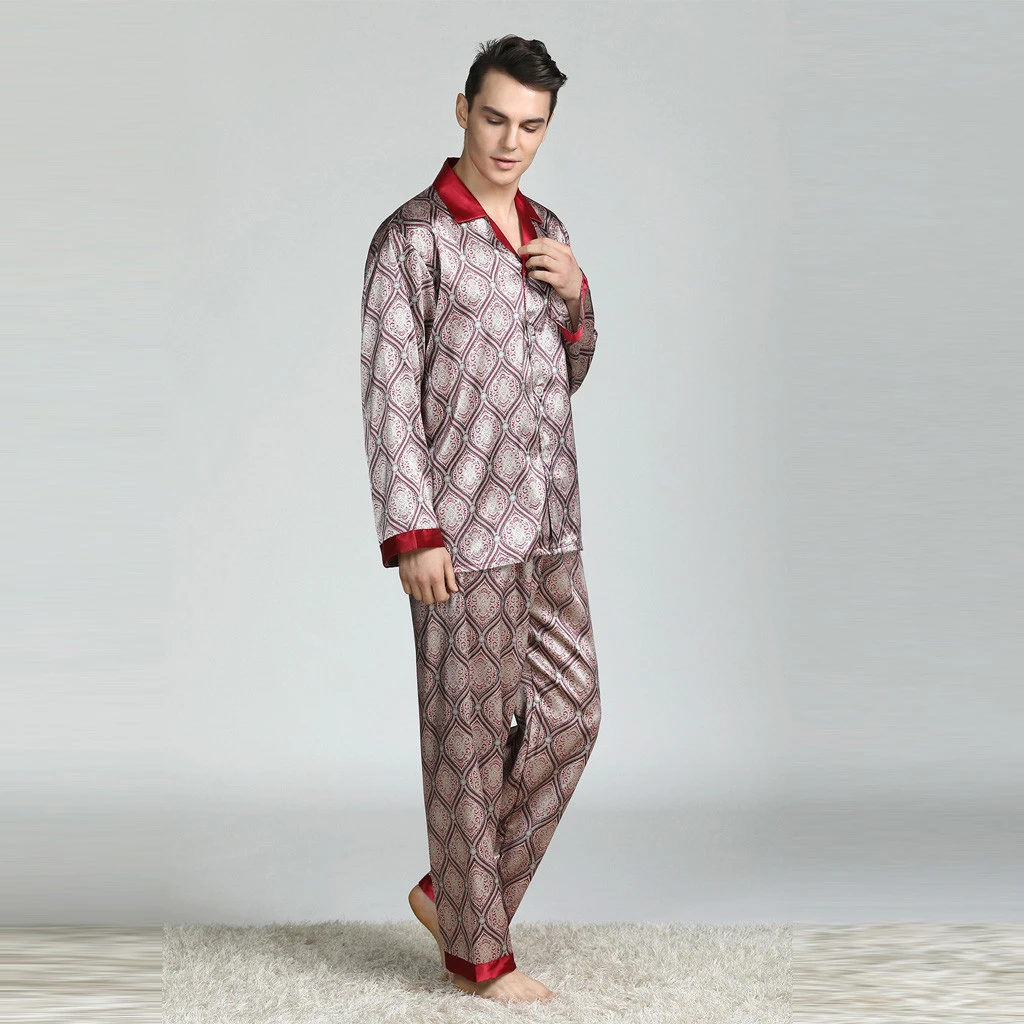 Men S Home Service Pajamas Suit New Long Sleeved Printed Foreign Trade Home Service Silk Full Sleepwear Autumn Men Pyjamas Men S Pajama Sets Aliexpress